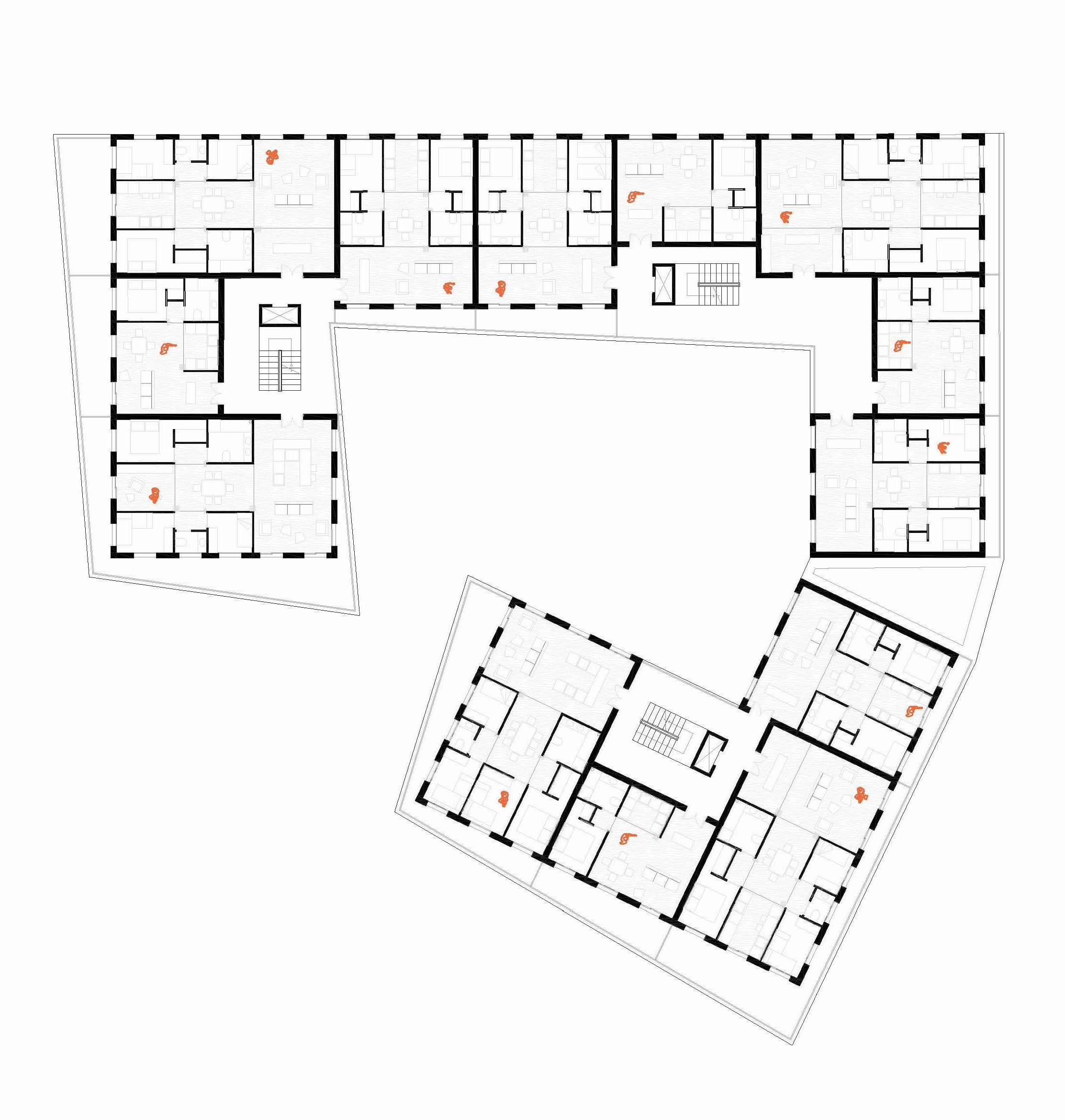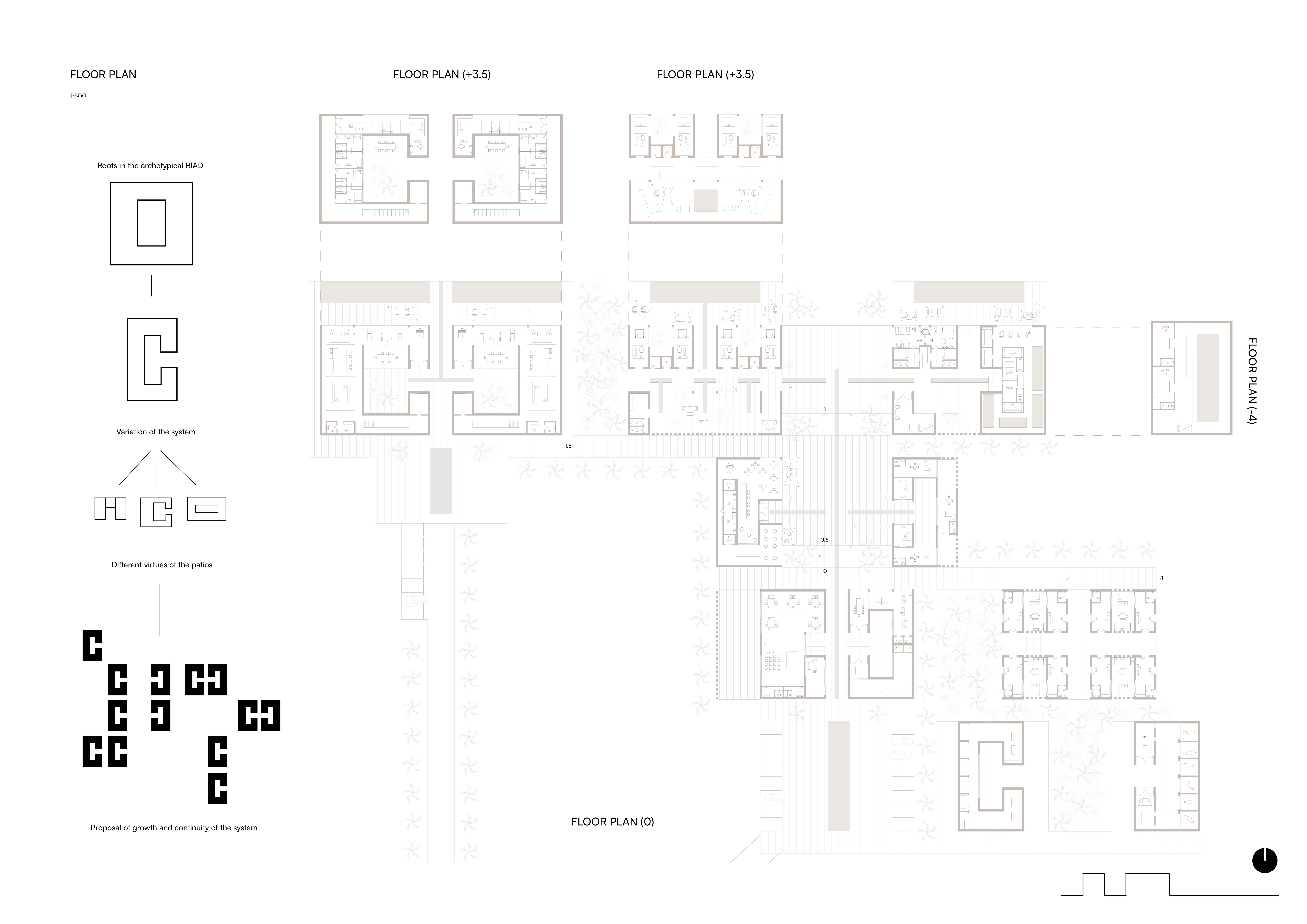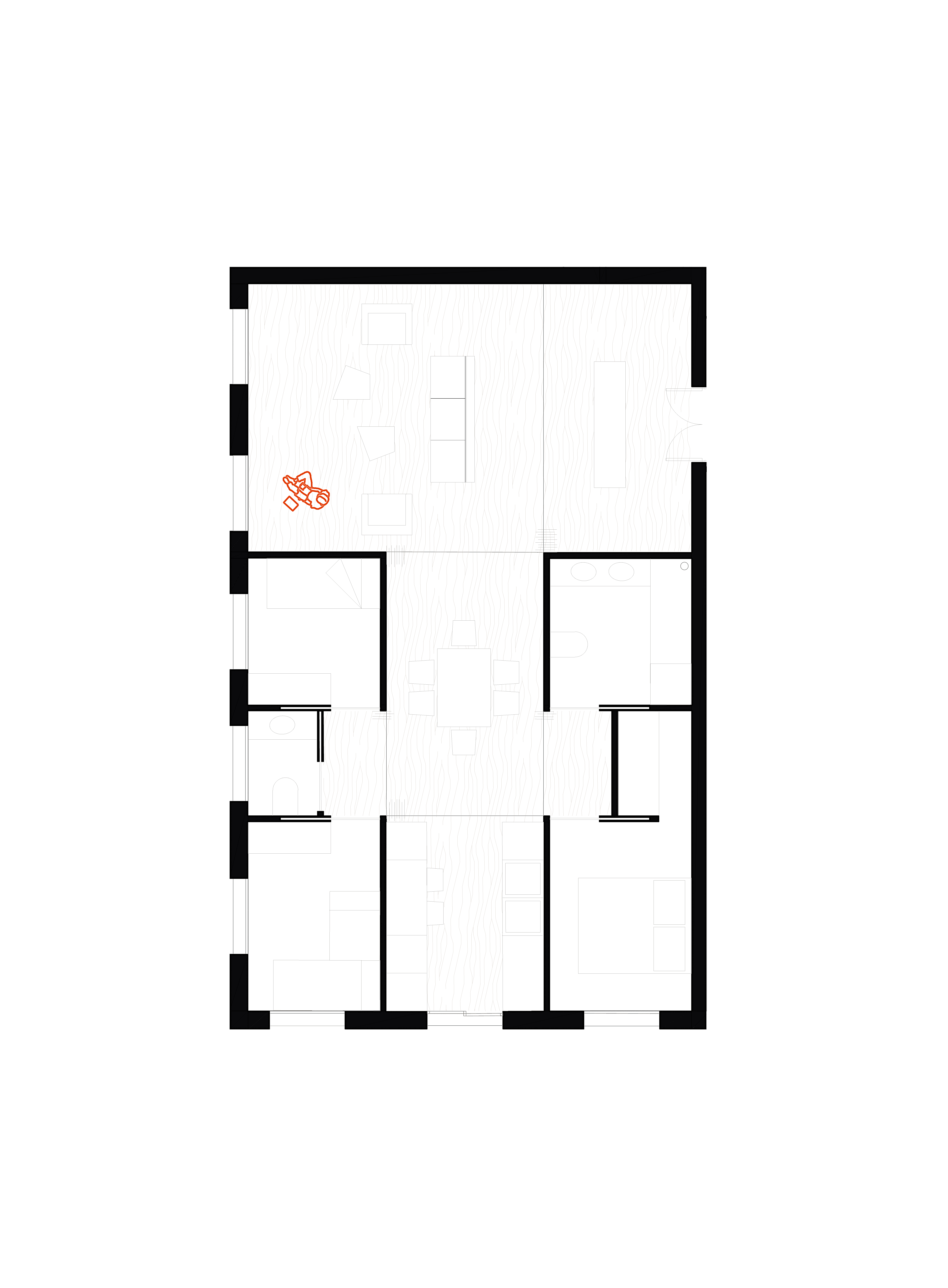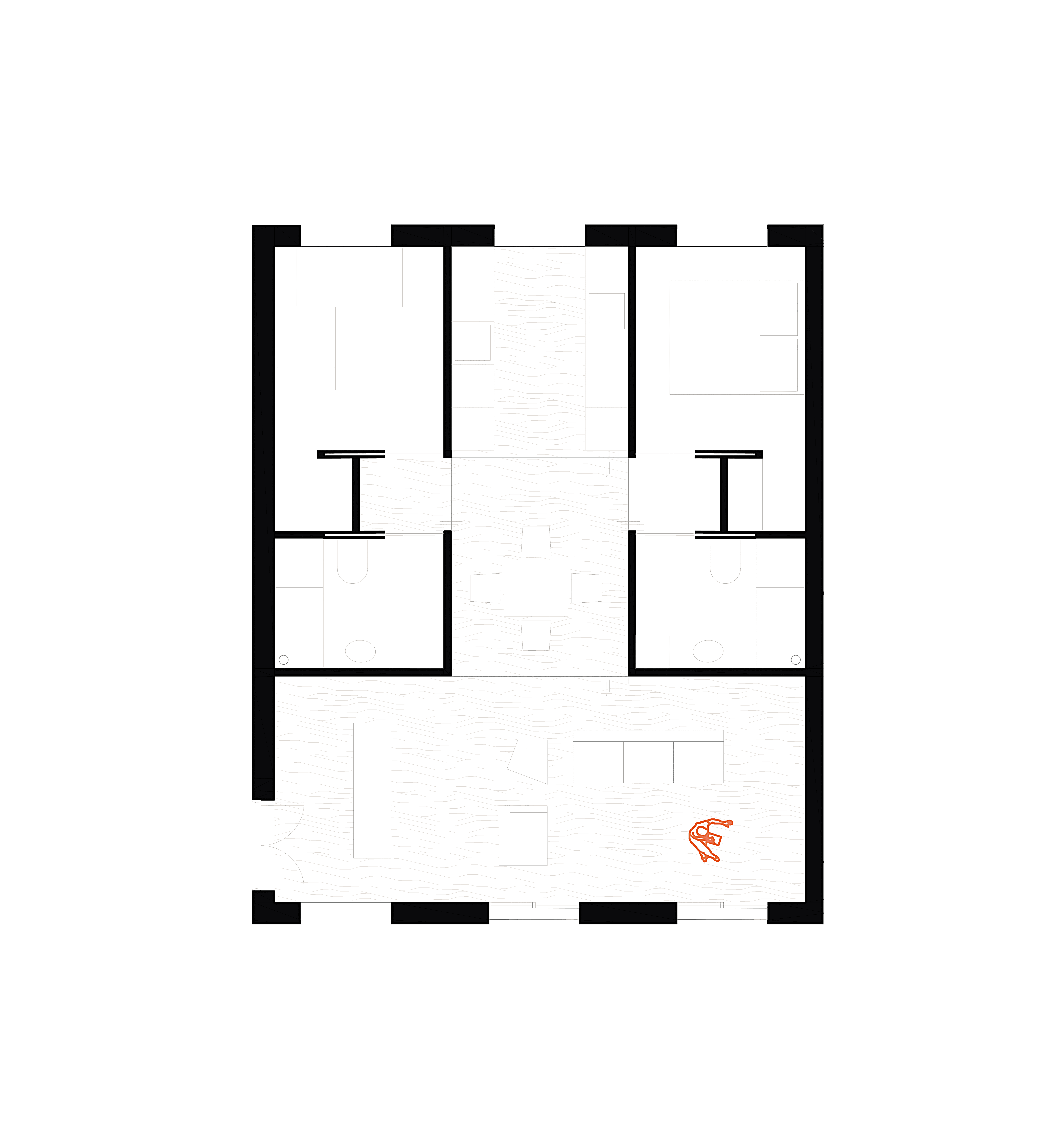 Our homes reflect who we are. They are the most intimate spaces in which we unfold and express ourselves. Housing must offer not only physical shelter, but spatial and emotional quality—a framework for a dignified life. Yet, dignity in housing cannot be defined by rigid standards. Rather, it must emerge from flexibility and adaptability. Spaces should not impose fixed ways of living. Instead, they should open possibilities, allowing each inhabitant to shape their own home—rather than being shaped by it. The three housing examples correspond to 1-, 2-, and 3-bedroom homes measuring 38, 62, and 84 square meters, respectively. The solution offers abundant natural light and ventilation, as well as different spaces that can be partitioned off. This proposal envisions a dwelling organized around a central, public, collective core—a space for sharing. Because life unfolds in community, and it is that collective dimension which ultimately defines the meaning of home. All other spaces remain open to interpretation and choice, left to the needs, rhythms, and desires of those who inhabit them. Because what we build, builds us—and each of us should be able to choose what we want to build for ourselves.