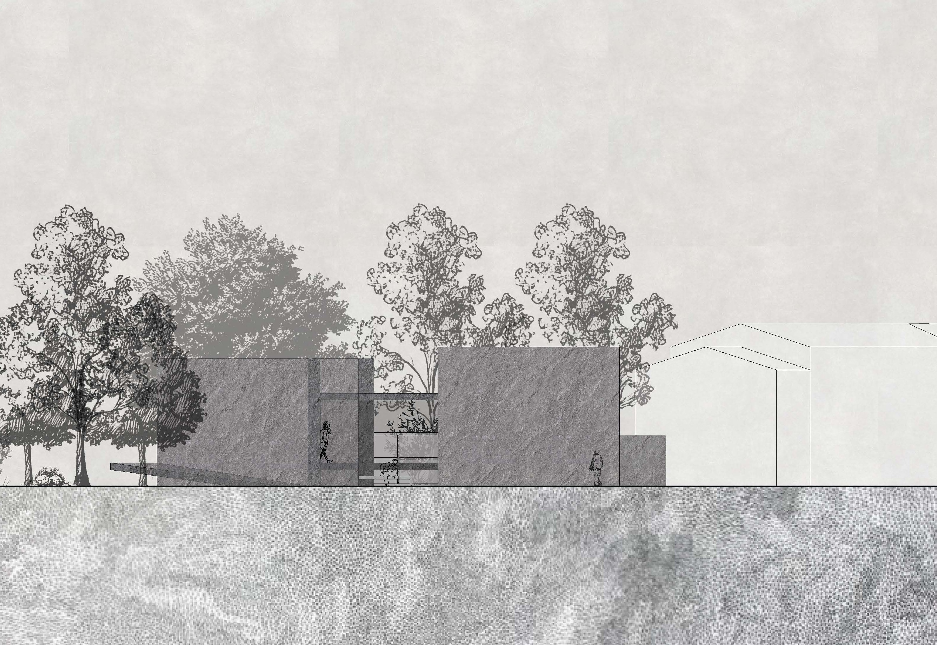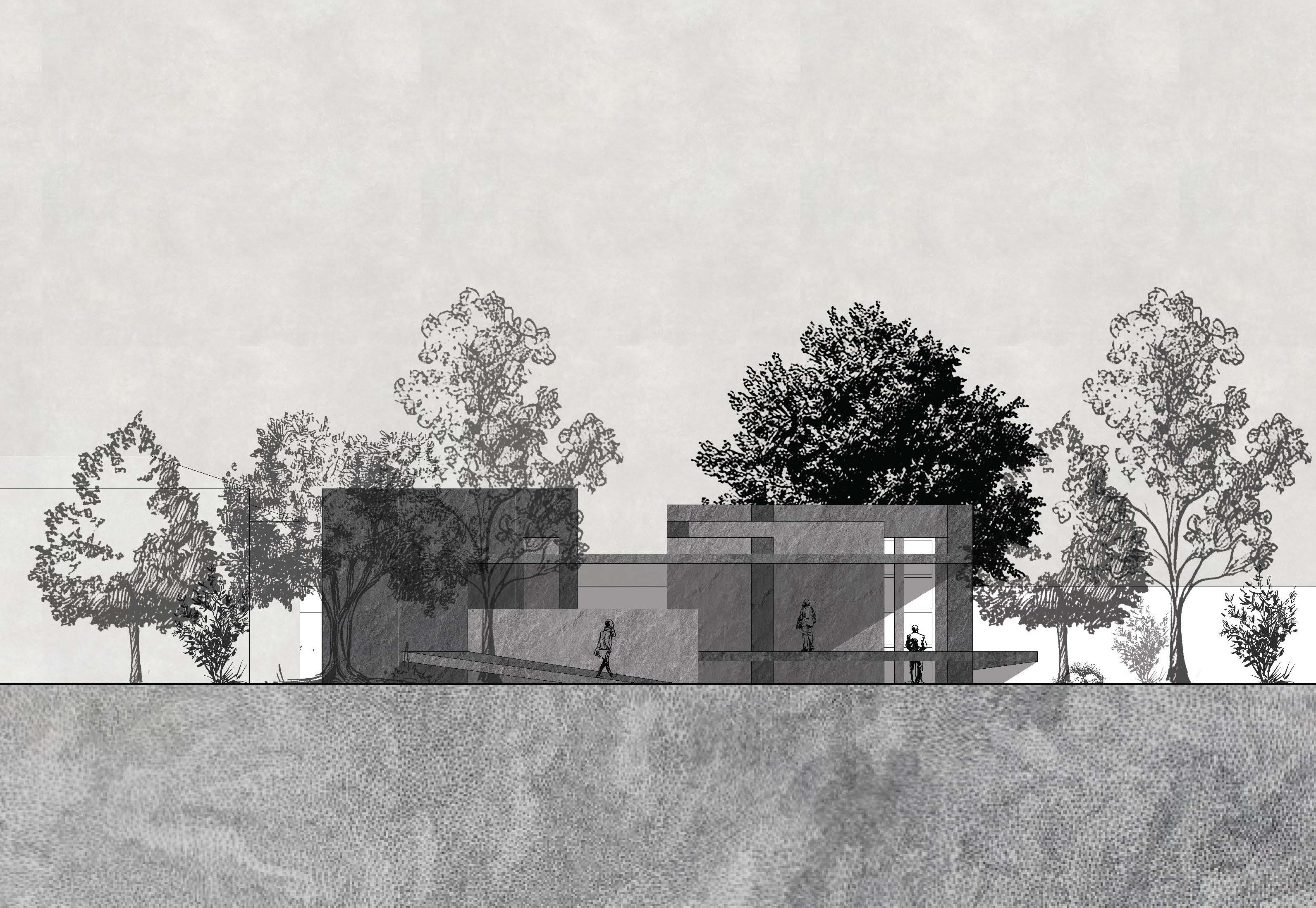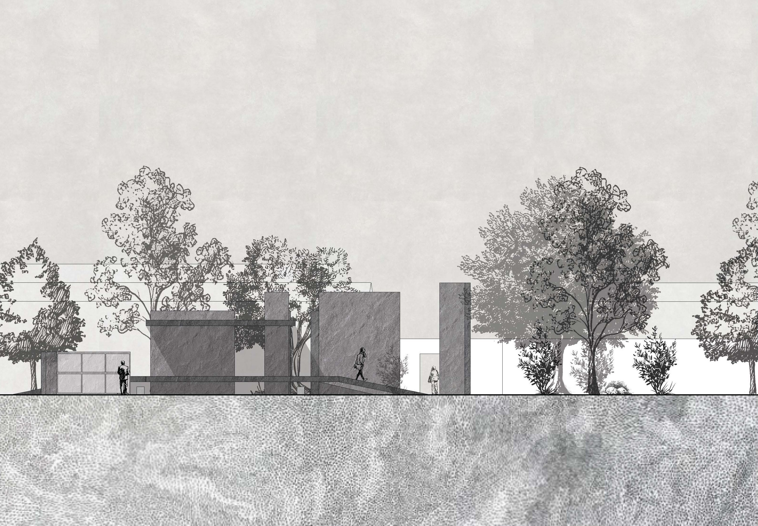 VIA LUCIS (The Path of Light). The mausoleum is conceived as a metaphor for human passage—not as a finished being, but as the client thinks of himself, as a traveler on a journey toward a destiny that transcends him: heaven. Its labyrinthine path, with clearings and thresholds, expresses the condition of constant search, of moving forward and endless hope. We created an open space, a humble intervention where concrete descends upon the meadow, and a light roof shelters what the singular walls enclose. The labyrinth is proposed as a duality: some will experience it with curiosity and wonder; others, in sorrow, will seek refuge within it. Architecture, marked by rhythms of light and shadow, embodies the duality of life: the fragile against the eternal, the transient against the absolute. The sun now measures time, slipping between the walls to illuminate the central space, composed of the altar and the tomb. Vegetation embraces the architecture, becoming part of it and it is nature that softens the austerity of concrete, reminding that even in eternal rest, life continues to pulse. Thus, the client´s mausoleum takes shape: an architectural piece articulated with the essential, yet imbued with symbolic and spiritual value that transcends matter.