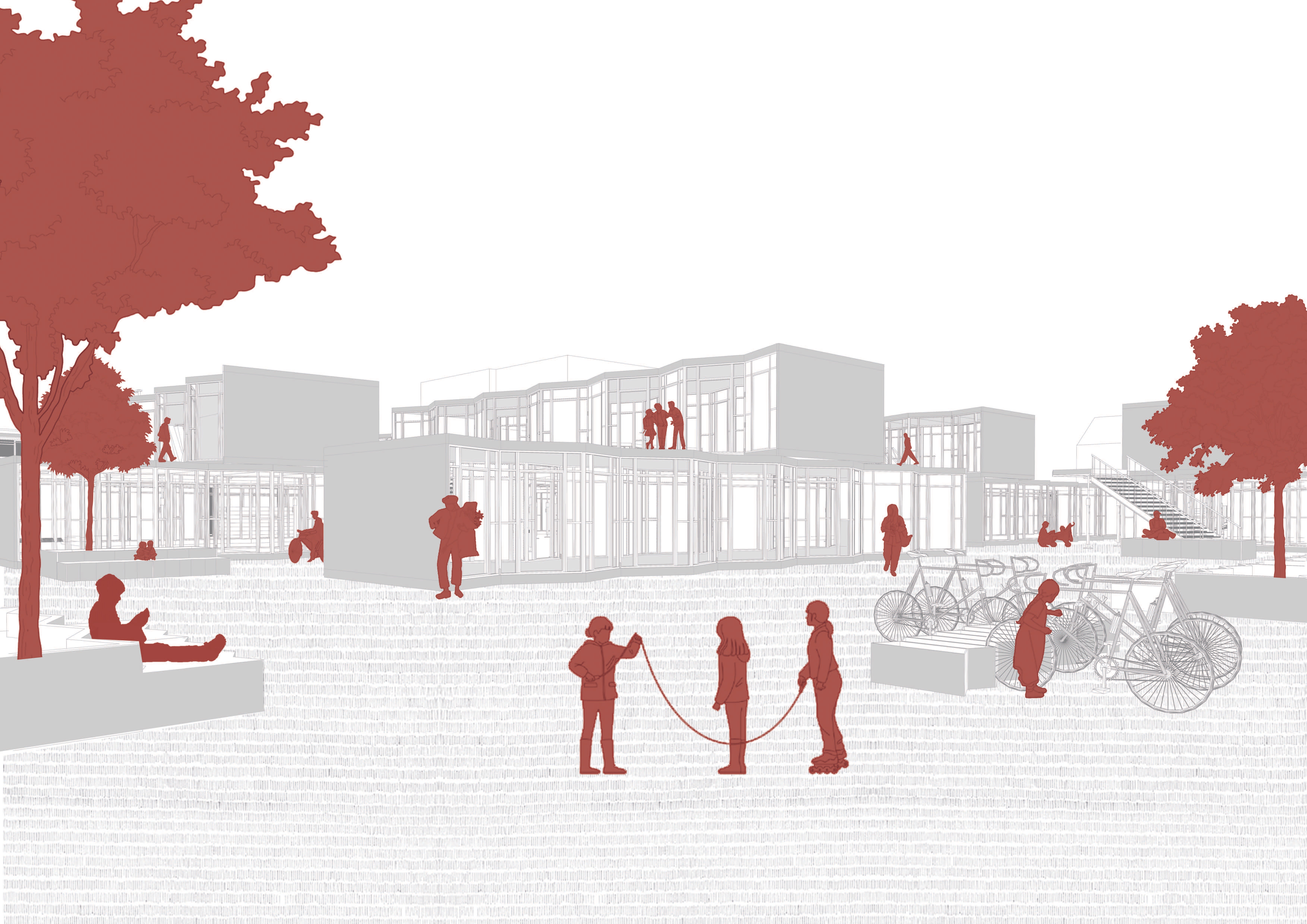ERSILIA. As Italo Calvino narrates in Invisible Cities, on many occasions, a building dies and all that remain are the memories of a yesterday, the stories of those who were there, the soul of something that was architecture and is now brick and mortar. Countless networks have been woven in Isola and now lie exposed to the elements, weakening, fading away. Ersilia recovers the value of those connections, of those bonds that unite lives, and of those spaces that surround them. Ersilia emerges to restore, reconcile, and be reborn. Filled and empty spaces from a yesterday shape the blocks that are still inhabited today. It is not necessary to detach from that, from the forms that still work. It would make no sense to move away from the compact block facing the courtyard that has brought so many neighbors together. It still works today, it still makes sense today. From the voids that stretch from Isola to the city, homes emerge that welcome those seeking the warmth of the neighborhood. Spaces connect, neighbors shake hands. Vegetation accompanies the routes and the rich views that are created. Every corner is a space of quality, of well-being. Isola reconnects, revives, and reconciles.