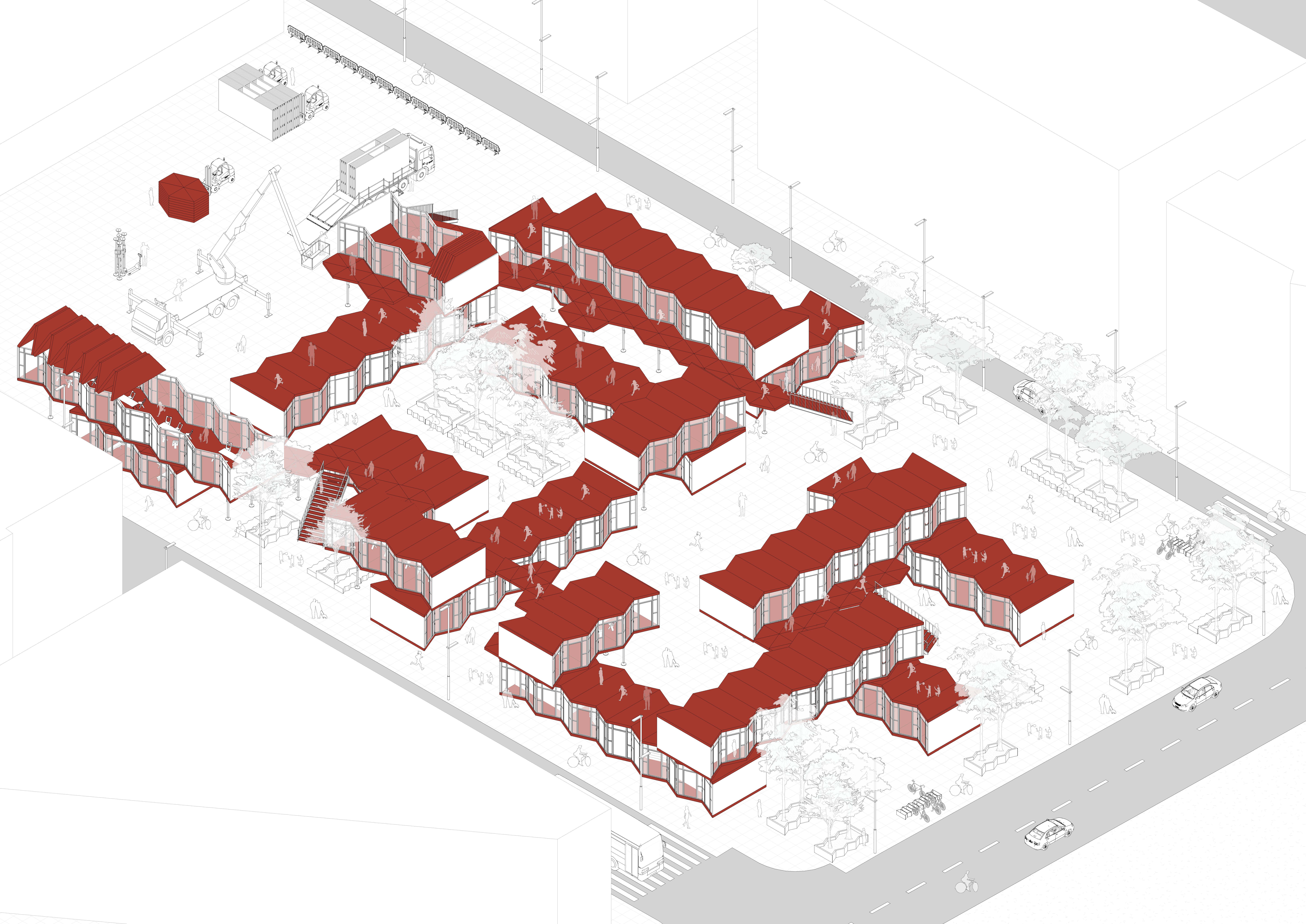 SOS: Sostener, Ofrecer, Soñar (Sustain, Offer, Dream). Emergencies do not always manifest themselves in the din of disaster; sometimes they persist in silence when everything seems to be over, lingering in the fragility of everyday life. SOS was born from the conviction that architecture should accompany us in this suspended time, offering more than just shelter: presence, continuity, and possibility. Based on a module that compresses for travel and expands for habitation, the project constructs responses that are adaptable to diverse physical, social, and cultural contexts. An architecture that does not impose, but rather listens, and understands habitation as the first act in rebuilding our community.